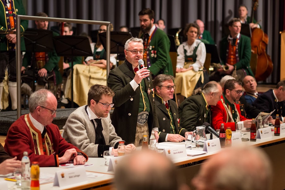 Der Blasmusikverband Tirol hat am 11. März 2018 zur 71. Generalversammlung nach Landeck eingeladen. Neben einer Vielzahl von Ehrengästen konnte unser Präsident Günther Platter erfreulicherweise zahlreiche Musikantinnen und Musikanten aus allen Landesteilen Tirols begrüßen. Sogar unseren Musikkamerad(inn)en aus dem Osttirol war die weite Distanz nicht zu mühsam und sie traten in den frühen Morgenstunden die Anreise über den Felbertauern nach Landeck an. Bereits um 08:30 Uhr begann die Hl. Messe in der Stadtpfarrkirche „Maria Himmelfahrt“, zelebriert vom Dekan Mag. Martin Komarek. Die Sadtmusik Landeck-Perjen unter Kapellmeister Hermann Delago gestaltete die Messe feierlich und erhaben. Wolfgang Bachler und seine Frau Vroni übernahmen den Sologesang. Josef Wetzinger und Klaus Strobl zeigten sich für die Komposition dieser Messe verantwortlich. Im Anschluss begleitete die Musikkapelle Stanz mit klingendem Spiel unter Stabführer Erich Wechner die Mitglieder zum Stadtsaal. Nach einer kurzen Kaffeepause im Foyer eröffnete die Stadtmusikkapelle Landeck unter Kapellmeister Helmut Schmid mit dem Stück „Young Pheasents in the Sky“ von Satoschi Yagisawa die Generalversammlung. Auf humoristische Art und Weise erinnert unser Präsident die Funktionäre ihre Delegiertenkarten abzugeben und dass die Farben grün für die Kapellen und rosa für die Bezirke seien. Jedoch nichts mit der Politik zutun habe und schwarze Delegiertenkarten gäbe es keine. Leicht verspätet stellt also Günther Platter die Beschlussfähigkeit der Vollversammlung fest. Nach der Begrüßung durch Hausherrn und Bürgermeister Dr. Wolfgang Jörg berichtet er über die Infrastruktur der Stadtgemeinde Landeck und betonte zum Abschluss, dass die Musikkapellen unseres Landes die wichtigsten Kulturträger in Tirol sind. Unter Tagesordnungspunkt 4. wird vom Bezirksverbandsobmann Florian Geiger der Musikbezirk Landeck vorgestellt. Stolz können wir auf eine 70zig jährige Verbandsgeschichte zurückblicken. Weiters weist der Bezirksobmann über eine lückenlose und fleißige Arbeit seiner Vorgänger hin. Nach dem Totengedenken unserer verstorbenen Musikkameraden berichteten die Landesfunktionäre Elmar Juen, Rudi Pascher, Martin Waldner und Robert Werth gemeinsam über ein abwechslungsreiches Musikjahr 2017. Neben dem Landesmarschierwettbewerb in der Silberstadt Schwaz, Tiroler Tag bei den Innsbruckern Promenadenkonzerten und diversen Ausbildungs- und Bläserwochen war wohl Tag der Blasmusik am 21. Oktober in Innsbruck anlässlich des 70zig jährige Bestandsjubiläum des Landesverbands die größte Herausforderung. Mit Applaus bestätigte und honorierte die Vollversammlung die Arbeit der einzelnen Funktionäre des Landesverband. Finanzreferent Markus Schlenck deutete noch auf ein kleines finanzielles Loch in seiner Verbandskasse hin und beruhigte die Generalversammlung. Dass aufgrund der vielen geplanten musikalischen Veranstaltungen und Ereignisse dieses Minus vorhersehbar war und mit diversen Rücklagen wieder aufgefangen werden konnte. Nach dem Bericht des Kassaprüfers Andreas Ehrenstrasser konnte dem Finanzreferenten eine vorbildhafte Kassaführung nachgewiesen werden, auf die eine einstimmige Entlastung des Kassiers sowie dem gesamten Landesverband folgte. Bei den Ansprachen der Ehrengäste bedankt sich der Landesverbandsobmann von Vorarlberg Wolfram Baldauf über die gute Zusammenarbeit mit den Tirolern. Bezirkshauptmann Stv. und Bürgermeister von Zams Mag. Siggi Geiger erwähnt nochmals die Bedeutung der Musikkapellen im Bezirk und bedankt sich bei den Musikantinnen und Musikanten für die außergewöhnliche Arbeit was übers Jahr von den Kapellen geleistet wird. Anlässlich des 70zig jährigen Bestandsjubiläum hat sich die Stadtmusikkapelle Landeck ein Auftragswerk vom Tiroler Komponisten Martin Rainer komponieren lassen. Das Stück mit dem klingenden Namen „Intrada Jubilo“ wurde bei der Generalversammlung von der Stadtmusikkapelle Landeck uraufgeführt. Dieses Stück wird heuer von der Stadtmusikkapelle noch öfters zuhören sein. Unter dem letzten Tagesordnungspunkt „Allfälliges“ ergriff Dekan Mag. Martin Komarek nochmals das Wort, bedankte sich für die Einladung und weist auf die Mechanik der Kirchenorgel hin. Eine Orgel wird ebenfalls mit Luft betrieben und fällt sozusagen unter die Familie der Blasinstrumente. Eine Wortmeldung kam noch zum Schluss der Versammlung. Es konnten beim Landesmusikfest nur 10 Prozent der Kapellen teilnehmen. Im Gegensatz zu den anderen Landesverbandsfesten waren alle Kapellen eingeladen. Landesobmann Elmar Juen weist auf die Sicherheit hin. Bei 303 Kapellen und 16.000 Mitglieder ist so ein Fest unmöglich durchführbar. Unser Präsident blickt auf die Uhr und stellt eine neue Rekordzeit fest. Eine Generalversammlung unter zwei Stunden hat es noch nie gegeben. Er bedankt sich beim Auditorium und beschließt die 71. Voll-versammlung mit den Worten: „der Mensch braucht die Musik gleich wie die Sonne und die Erde!“