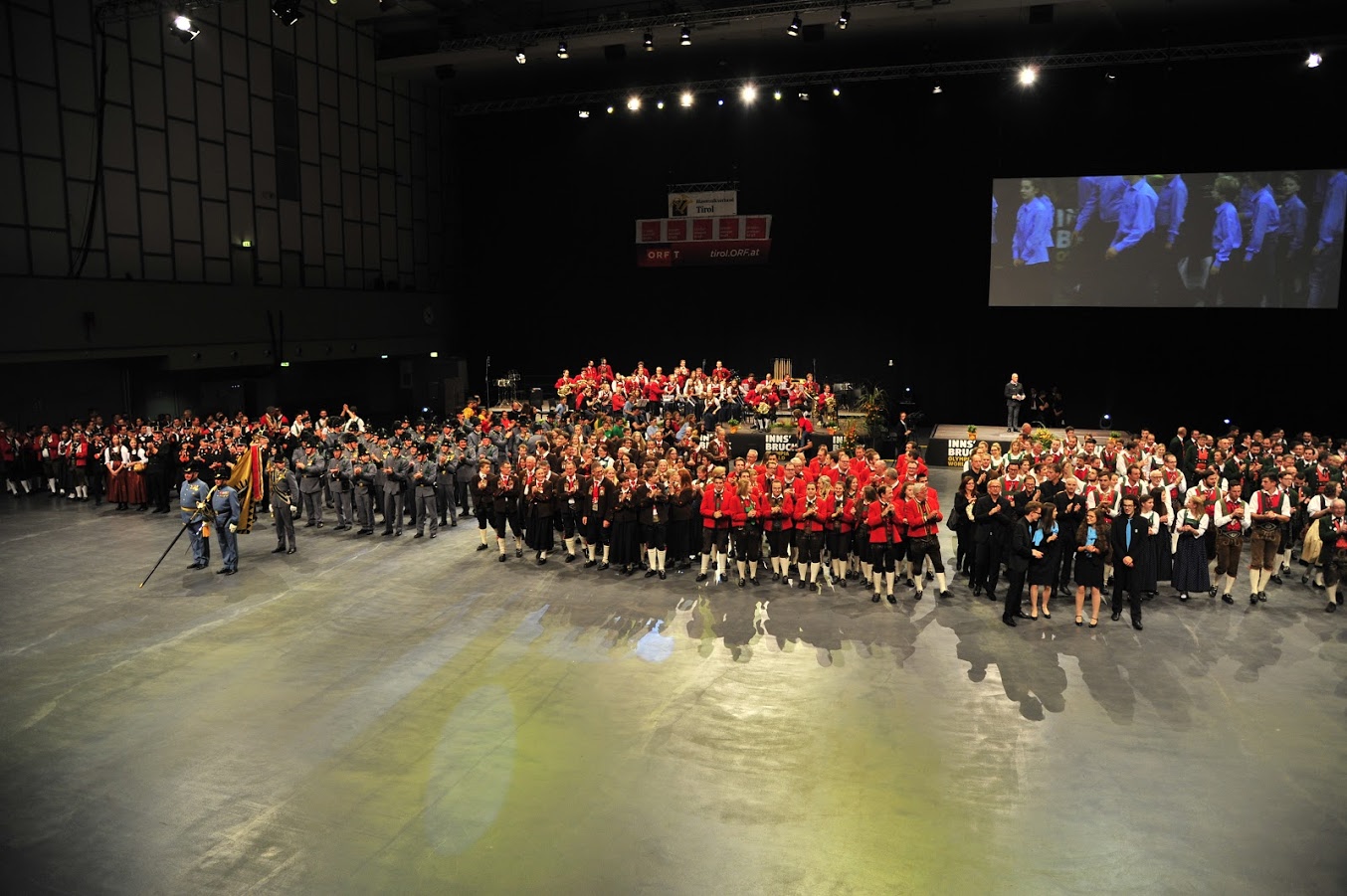 Mit „ Also sprach Zarathustra“ und „ Fanfare aus Rocky IV“ eröffnete Hermann Delago mit seiner Stadtmusik Landeck-Perjen um 19:00 Uhr den Höhepunkt des Landesmusikfest in der Olympiaworld. Die Perjener Musikantinnen und Musikanten sind absolute Meister in Punkto Rock und Pop und ein Garant für eine stimmungsgeladene und bombastische Performance.