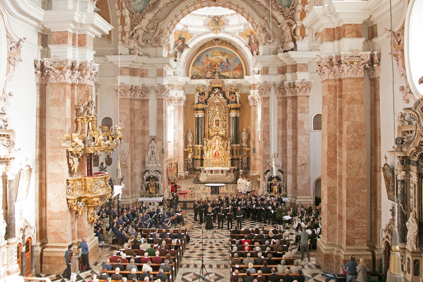 Um 13:00 Uhr gestaltete die Musikkapelle Prutz Leitung Michael Schöpf und die Musikkapelle Steinach am Brenner gemeinsam mit dem Kirchenchor Amras und der Chorwerkstatt Telfs eine Festmesse im Dom zu Innsbruck. Zur Aufführung kam die Festmesse in F-Dur, für Soli, Chor und Orchester, von Josef Pembaur (1848 – 1923). Als Zelebranten fungierten der Abt des Stiftes Stams Mag. German Erd und Prälat Dr. Florian Huber.