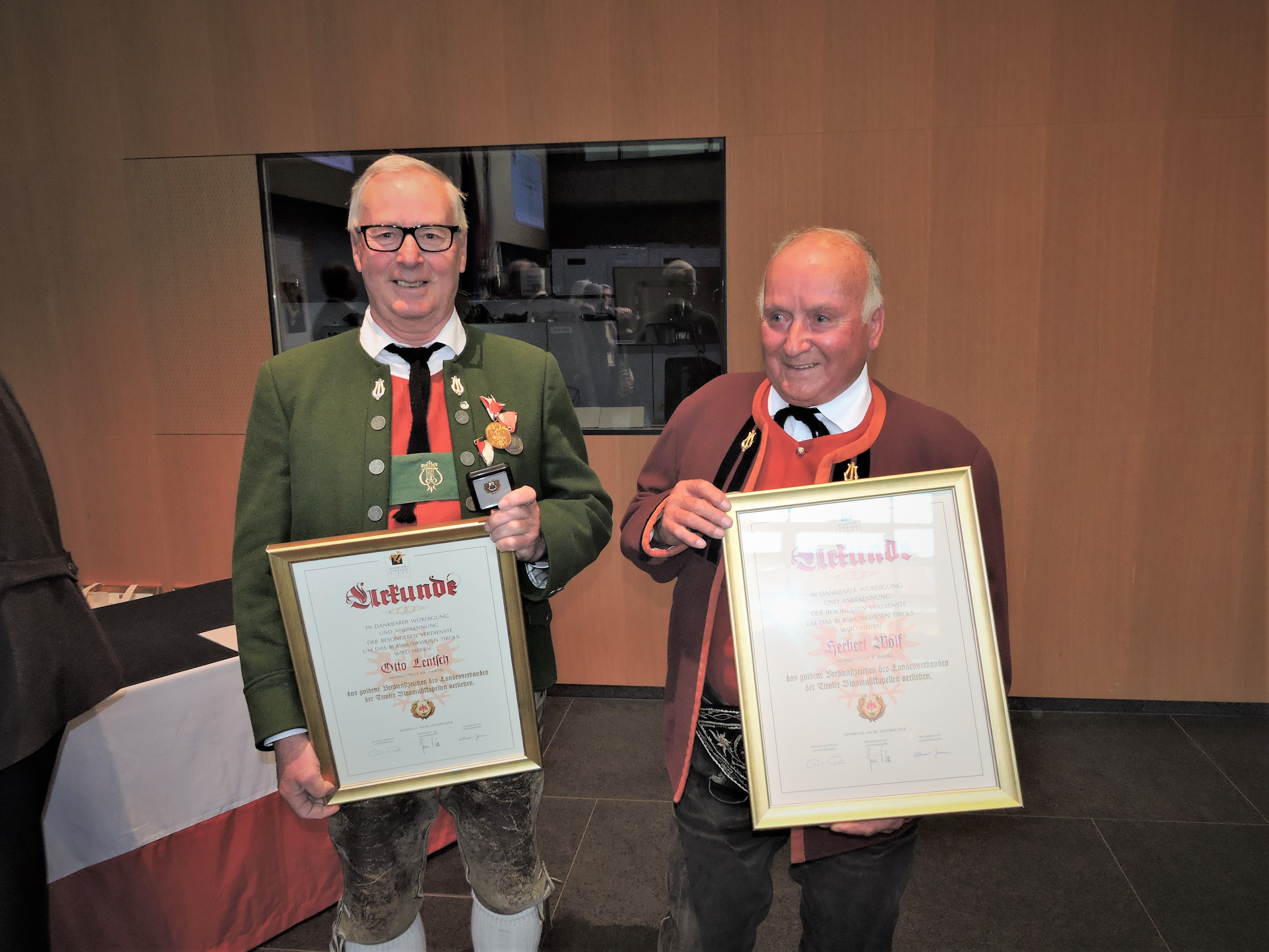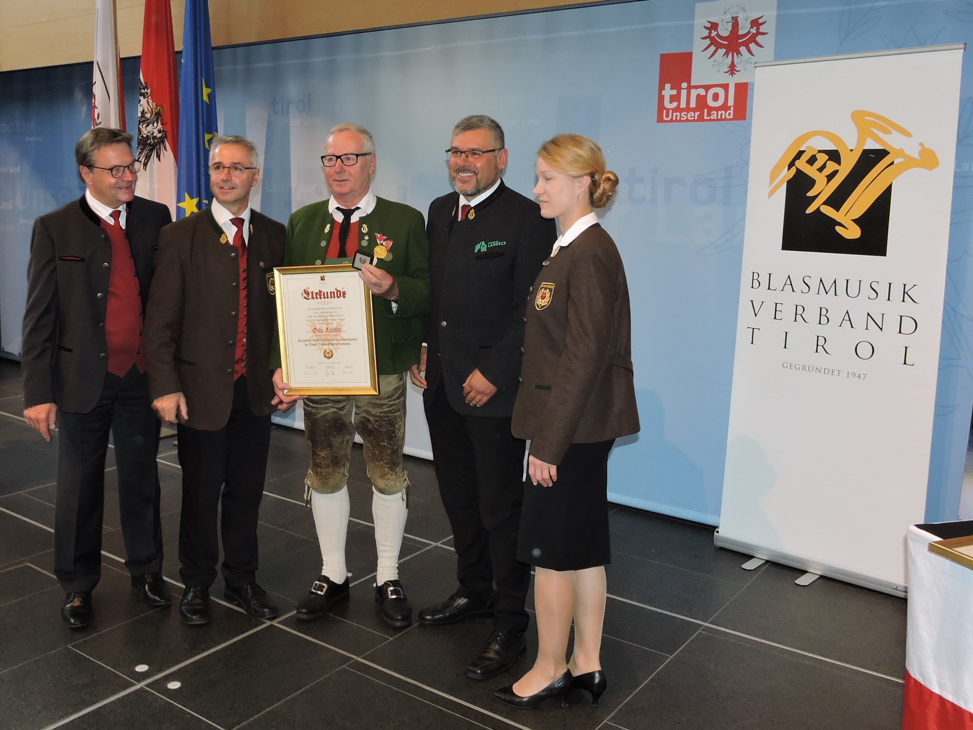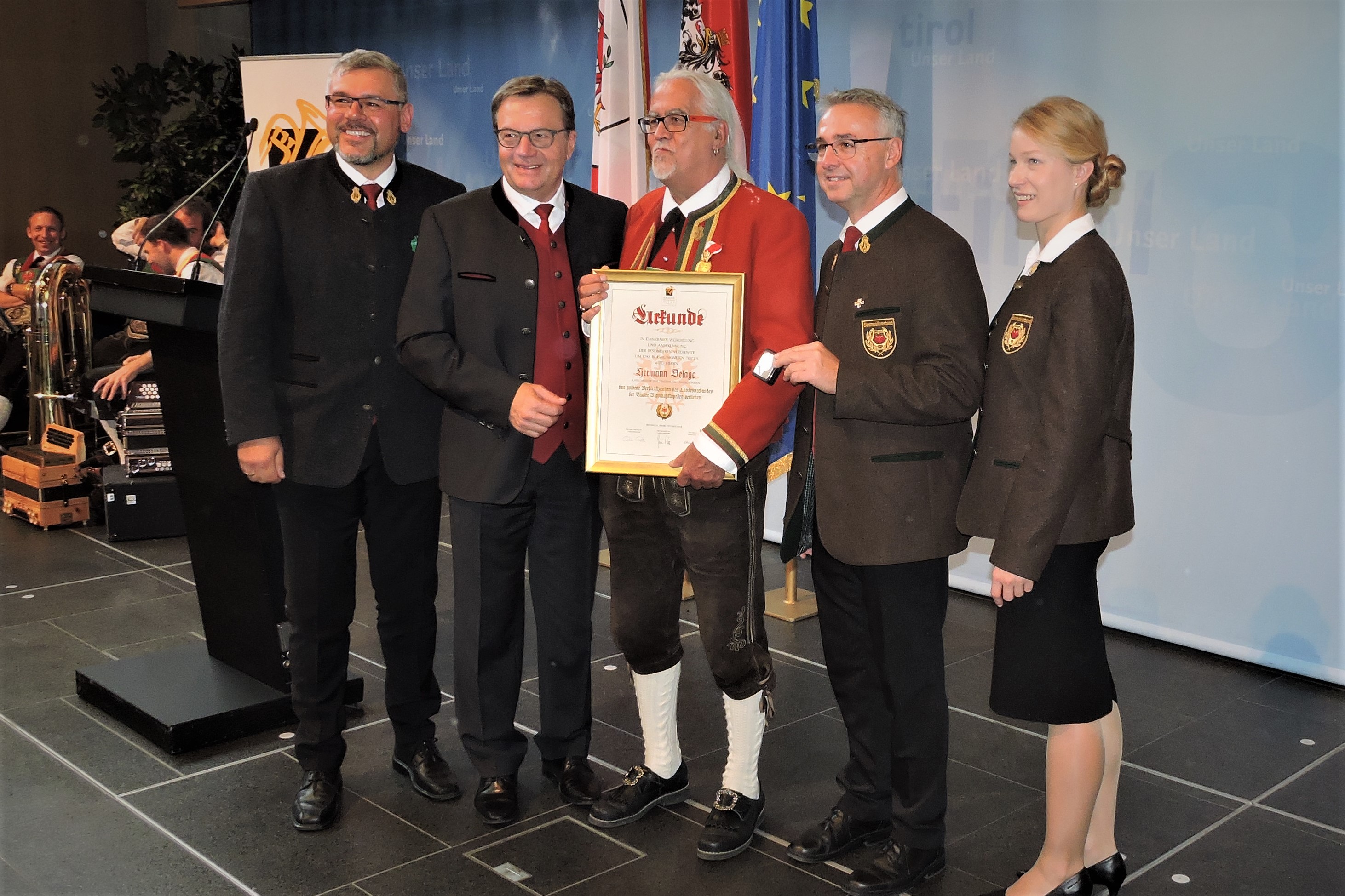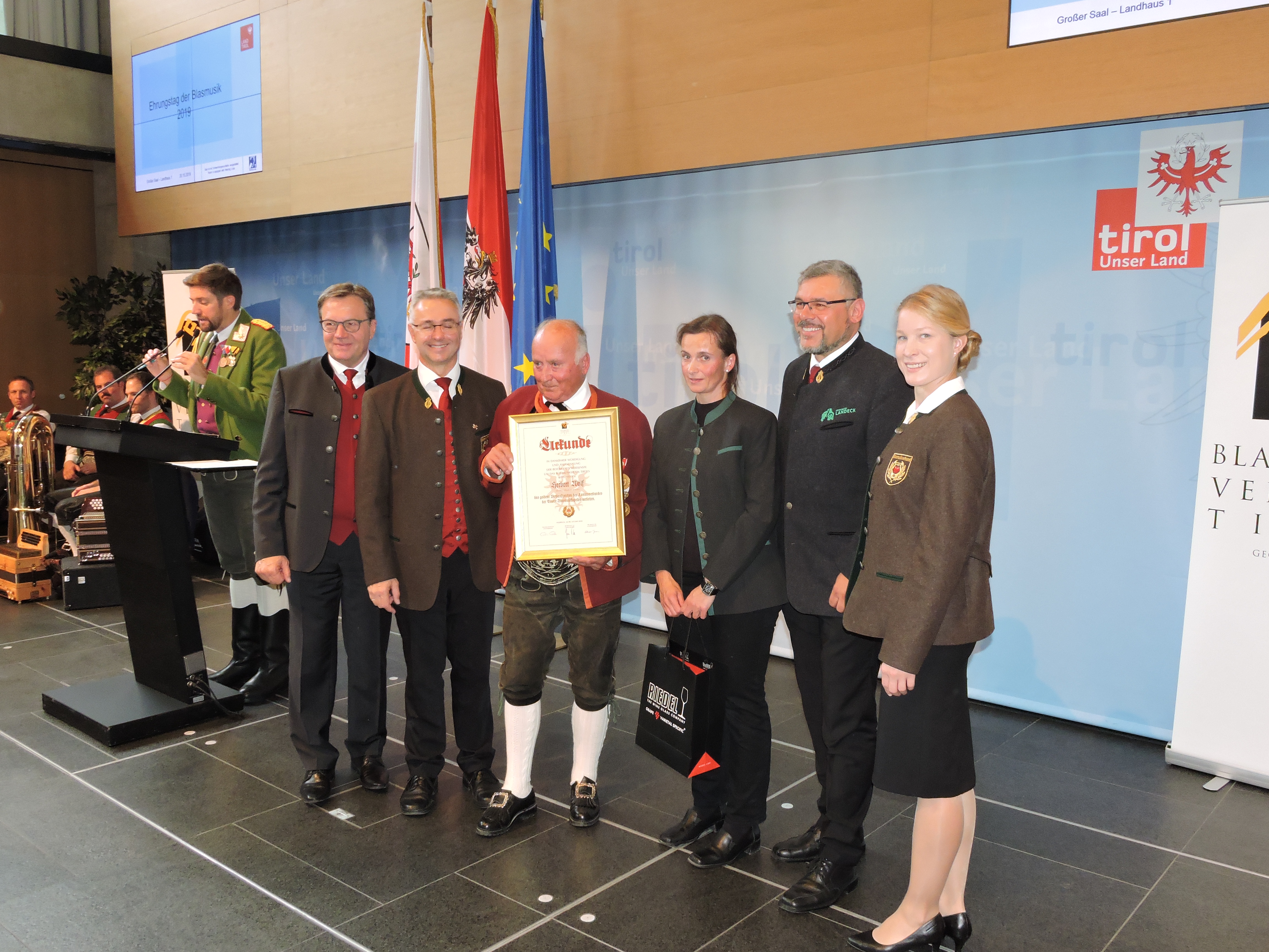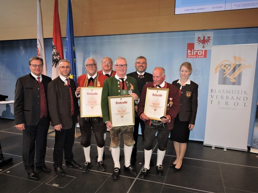 Am Sonntag den 20. Oktober 2019 lud der Landes-hauptmann Günther Platter wie jedes Jahr, verdiente und langjährige Mitglieder zum „Ehrungstag der Blasmusik“ in das Landhaus nach Innsbruck ein. Auch der Musikbezirk Landeck war mit drei zu Ehrende Musikkameraden in der Landeshauptstadt Innsbruck vertreten. Im Anschluss des Gottesdienstes in der Alten Spitalskirche, zelebriert durch den Hochwürdigsten Herrn Prälat Mag. German Erd, Abt des Stiftes Stams, fanden sich die Festgäste im großen Saal des Landhauses ein.