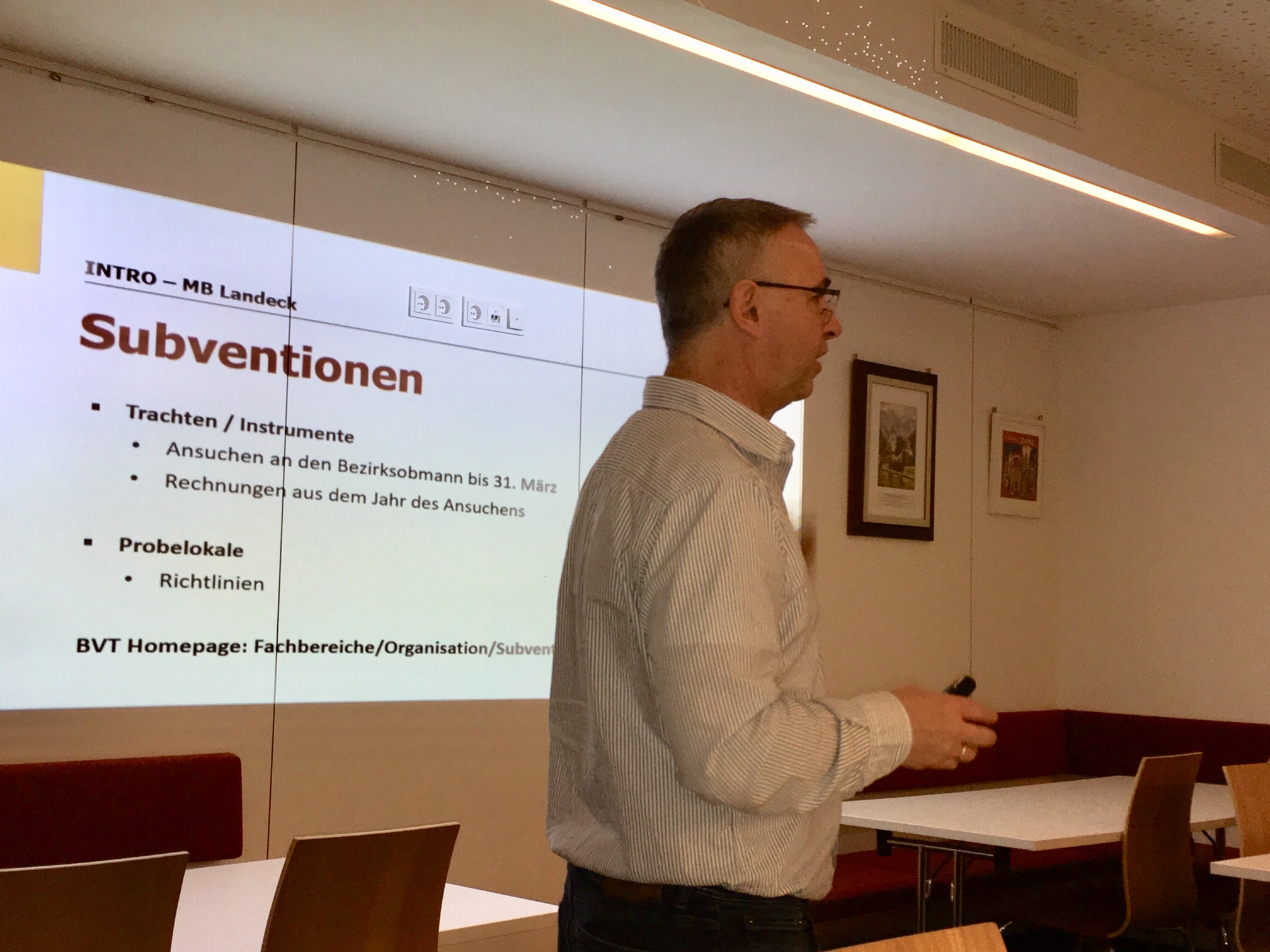 LO Elmar Juen verantwortlich für den 2. Teil „Administration“ berichtet er über unser vielfältiges und umfangreiches Mitgliederverwaltungsprogramm (MVP). Was bei den AKM-Meldungen zu beachten ist und was die Vereinsverantwortlichen bei der Datenschutzverordnung einzuhalten haben. Über Versicherungen von Musikvereinen und deren Mitglieder konnte Elmar wichtige Punkte anschneiden. Mit vielen Zwischenfragen bekundeten die wissbegierigen Funktionäre ihr Interesse.
