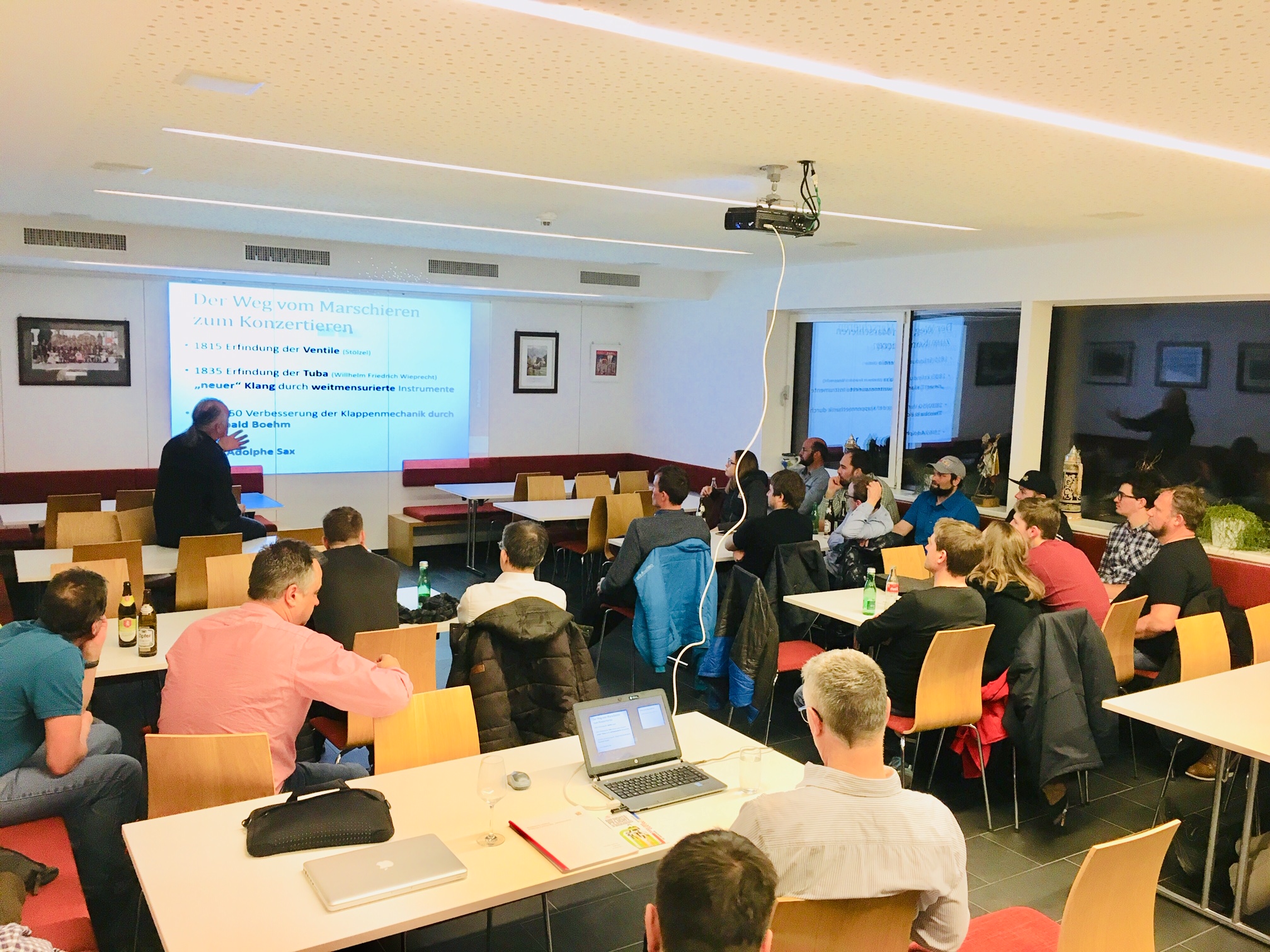 In drei wichtige Themenbereiche wie „Organisation“, "Administration" und "Musik" gliederte sich der Informationsabend „INTRO“ am Montag den 18. Februar 2019. 25 Vorstandsmitglieder, zum Teil neugewählte Funktionäre, darunter auch zwei Damen, holten sich wertvolle Tipps und Anregungen, welche sie im täglichen Umgang mit ihren Musikkamerad- (Inn)en sowie im Arbeitsprozess zur Führung eines Musikvereins benötigen.