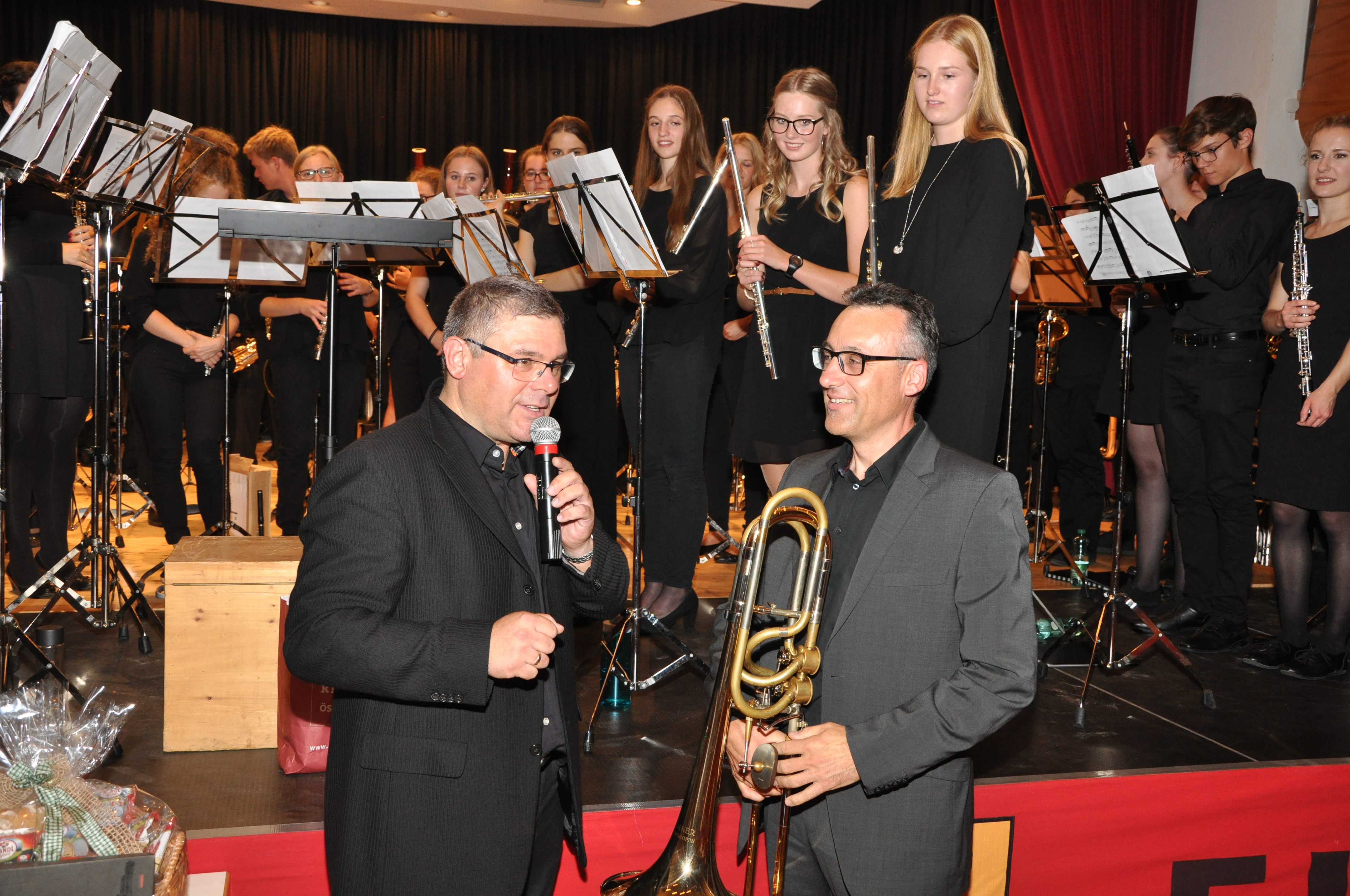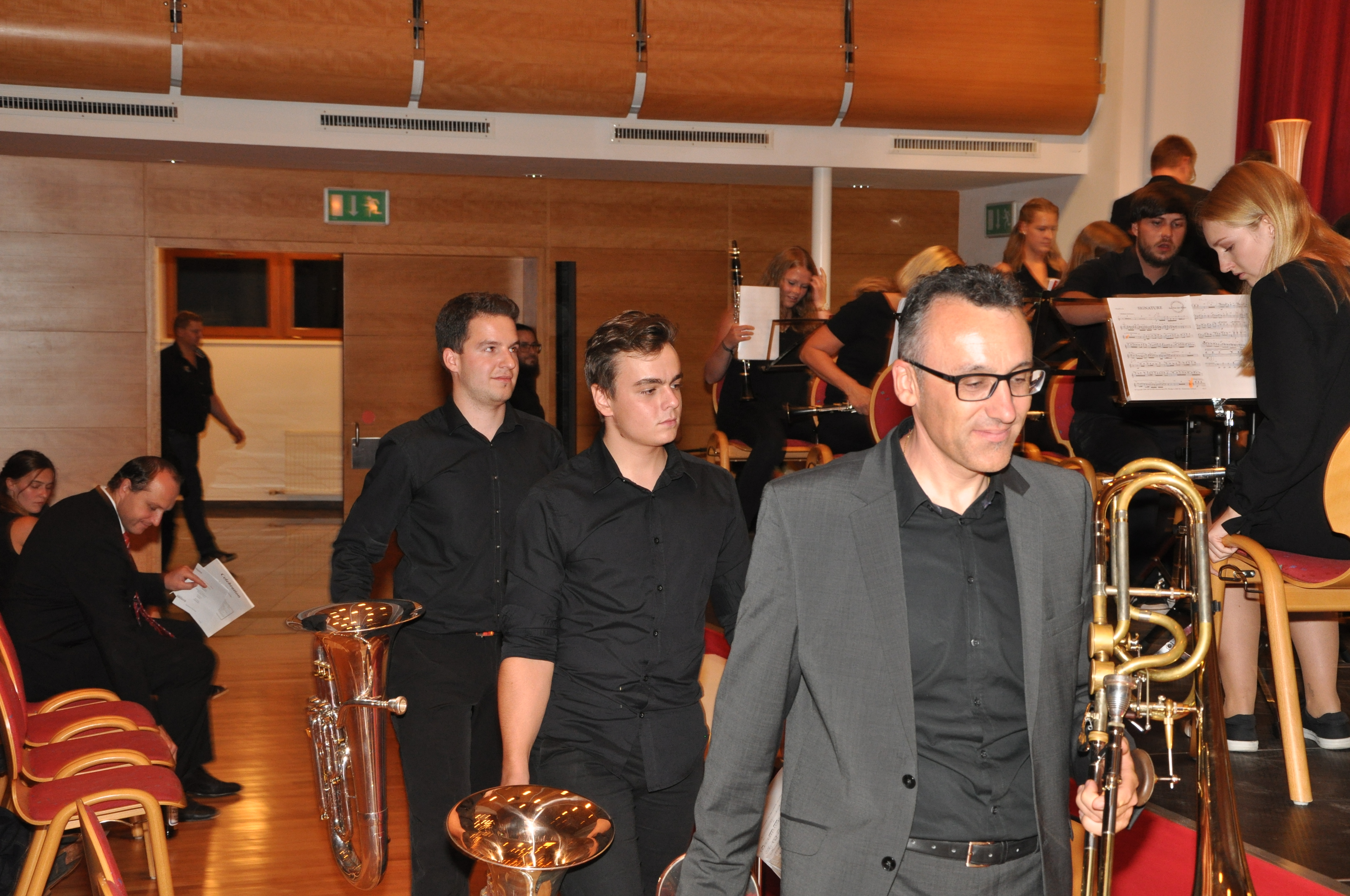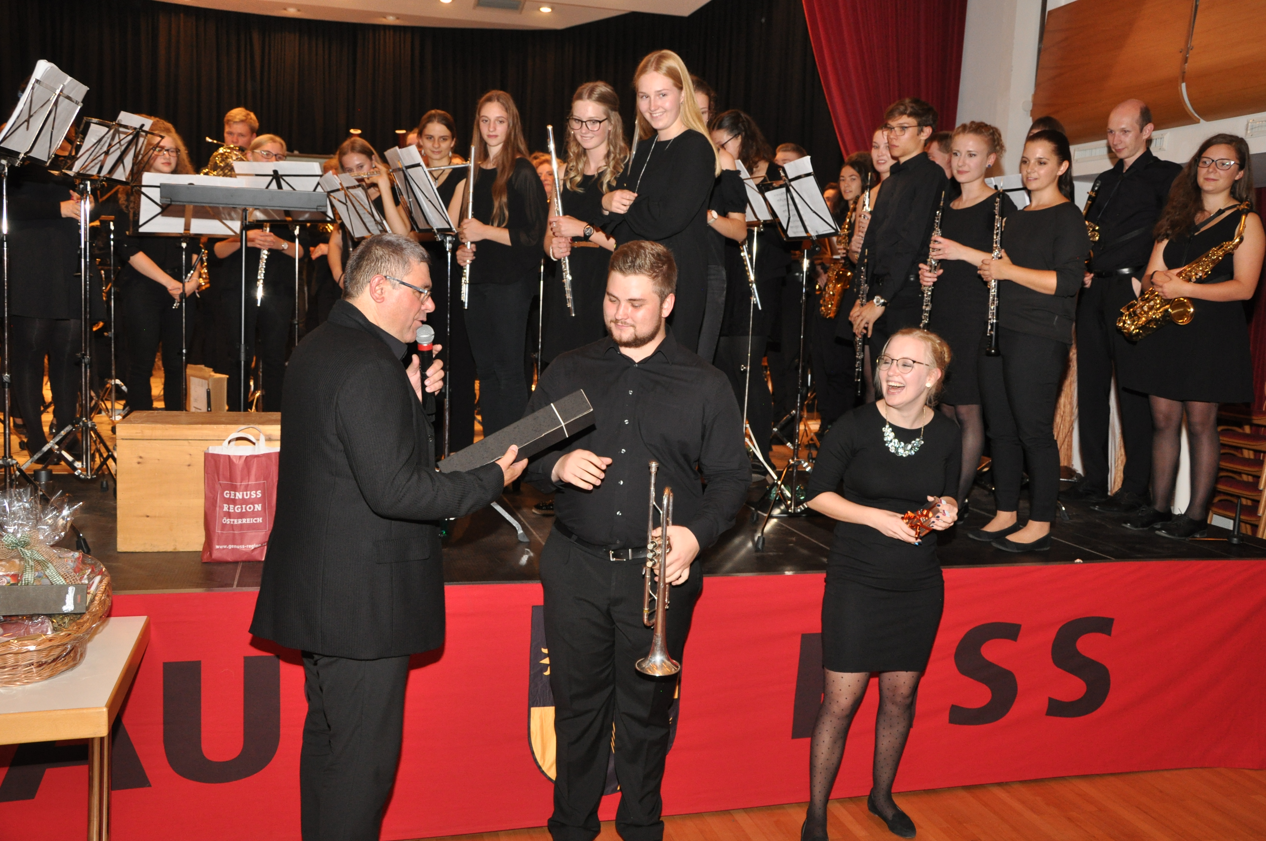 Jedes Jahr in der letzten Ferienwoche, ende August treffen sich junge, fleißige und begeisterte Musikerinnen und Musiker aus dem Musikbezirk Landeck zum Musikprojekt „la.sifonica“ zusammen. Anspruchsvolle sinfonische Musikliteratur der gehobenen Unterhaltungsmusik gilt es in drei Teilproben und fünf Vollproben zu erarbeiten. Im heurigen Jahr hat sich unser Bezirksjugendreferent Stefan Köhle mit seinen Stellvertretern Thomas und Christian etwas Besonderes einfallen lassen. Ein Doppelkonzert mit einem Jugendsinfonieorchester aus unserem Nachbarland der Schweiz zu organisieren. Die Junge Bläserphilharmonie Aargau (JBPA) unter der musikalischen Leitung von Markus Steimen konnte für dieses außergewöhnliche Projekt gewonnen werden. Markus ist in der Schweiz ein anerkannter Dirigent und arbeitet mit Stefan als internationales Jurymitglied bei Konzertwertungsspielen in der Schweiz, Deutschland und Italien des Öfteren zusammen. Nach einer sehr intensiven Probenwoche im Haus der Musik in Zams ging die Reise des Bezirkssinfonieorchester la.sinfonica mit 57 Musikerinnen und Musikern am Samstag den 08. September in den Kanton Aargau in die Stadt Aarau, zum Kongress und Veranstaltungszentrum. Vor ausverkauftem Konzertsaal gaben die jungen Musiker ein fulminantes und eindrucksvolles Doppelkonzert, welches mit einem Standing Ovation und begeisterten Beifallsstürmen von den Konzertbesuchern belohnt wurde. Beide Dirigenten waren mit den Leistungen ihrer Orchester zufrieden. Im Anschluss des Konzertabends wurde auf den gemeinsamen Erfolg angestoßen und erste Freundschaften geschlossen. Die Rückreise in die Heimat erfolgte am Sonntag nach einem ausgiebigen Frühstück. Freitag den 14. September trafen sich die Mitglieder des Jugendauswahlorchester la.sinfonica erneut im Kulturhaus Fiss zur Generalprobe für den zweiten Konzertabend dieses Musikprojekts. Beim zweiten Konzert am darauffolgenden Tag konnten die Leistungen beider Orchester erneut mit qualitativ-hochwertigen Musikbeiträgen abgerufen werden. Ganz besonderen Anklang fand das Solostück „Concerto for Clarinet Nr. 1“ von Oscar Navarro Solist Manuel Witsch gespielt von la.sinfonica oder das hervorragende Konzertwerk vom Schweizer Komponisten Mario Bürki „1405: Der Brand von Bern“, welches in eindrucksvoller, musikalischen Interpretation den Zuhörern von der JBPA näher gebracht wurde. Neben zahlreicher Musikfunktionären, Musikkolleginnen- und Kollegen aus unserem Musikbezirk und Umgebung, konnte Landesverbandsobmann Mag. ElmarJuen und Musikschulleiter Luis Sprenger unter den Ehrengästen begrüßt werden. Bezirksobmann Florian Geiger ließ es sich nicht nehmen aktiv an diesem Musikprojekt mitzuwirken und bedankte sich bei beiden Dirigenten für das gelungene Musikprojekt mit kulinarischen Köstlichkeiten aus unserer Region. Erwähnenswert ist auch ein junggebliebener Musiker. Karl Stecher von der MK-Nauders wirkte auf der Tuba bzw. Bassposaune an fast allen la.sinfonica-Projekten mit. Zwischenzeitlich spielen seine Söhne Karl jun. und Fabian ebenfalls im Orchester mit. Karl feierte an diesem Abend seinen Geburtstag und wurde vom Bezirksobmann mit einem kleinen Präsent überrascht. Bedanken möchte sich der Musikbezirksverband Landeck ganz besonders bei den Musikkapellen Fiss und Zams für die Verpflegung beider Orchestermitgliedern sowie die Bereitstellung der Proberäume und notwendigem Instrumentarium, sowie den Sponsoren TVB Serfaus-Fiss-Ladis und Bergbahnen Fiss-Ladis ein herzliches Vergeltsgott!